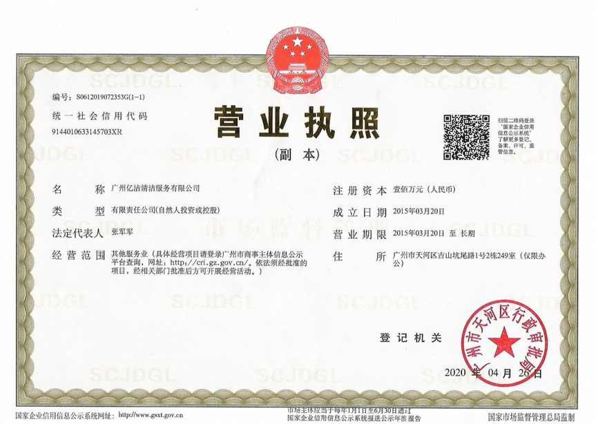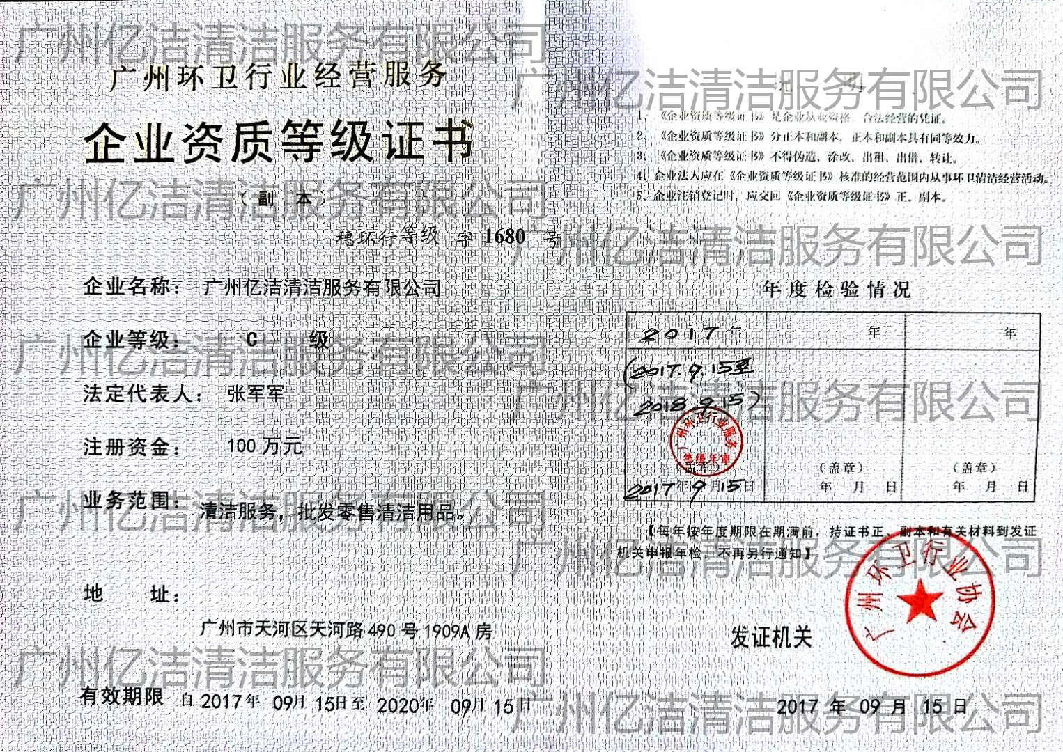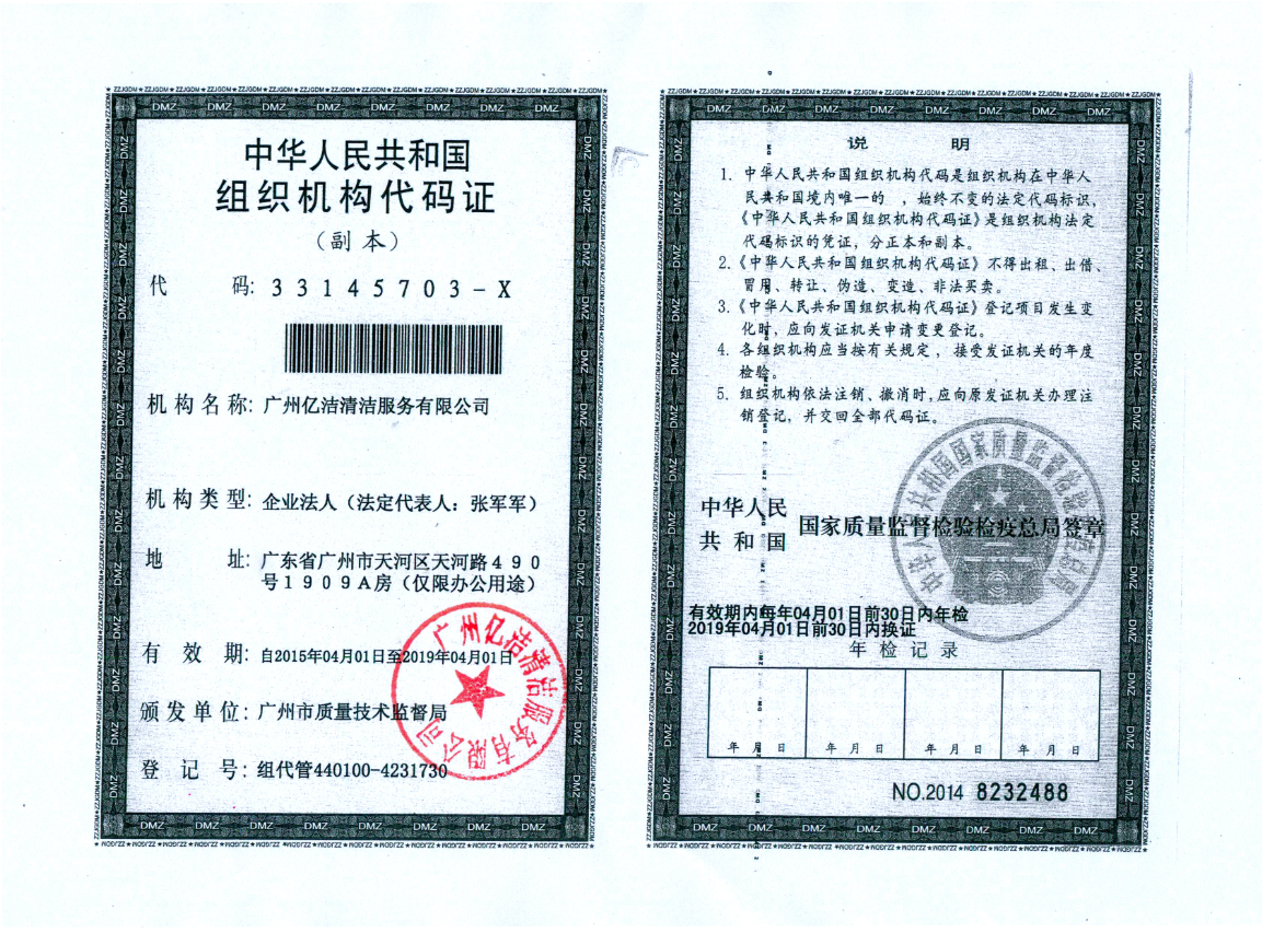 廣州億潔清潔服務有限公司是經(jīng)廣州市工商行政管理局批準成立的(注冊資本:100萬元人民幣)。具有獨立法人資質(zhì)。公司成立2015年,公司具備完善的管理體系和高素質(zhì)管理隊伍,擁有特種技術(shù)人員33名,保潔服務人員上萬名,覆蓋廣州市,能及時調(diào)配并快速投入高效運行。我們的每個員工都經(jīng)過公司的嚴格篩選,嚴格培訓,定期培訓后持證上崗以保證服務品質(zhì),保障客戶的權(quán)利,利益,形象等不受損失。 廣州億潔清潔公司是一家設(shè)備齊全,技術(shù)強大的綜合型清潔服務公司,為客戶提供完善服務尊定了堅定的基礎(chǔ)。 司于2010年全面推行了ISO9001質(zhì)量管理體系認證和ISO14001國際環(huán)保體系認證。先后獲得廣州高層建筑外墻清洗維修作業(yè)【安全資質(zhì)證書】、【廣州環(huán)衛(wèi)企業(yè)等級證書C級資質(zhì)】、廣州疾控中心頒發(fā)的【四害消殺服務資質(zhì)證】、【空氣治理A級資質(zhì)】、中國石材協(xié)會頒發(fā)的【石材資質(zhì)B級資質(zhì)】等。 廣州億潔清潔服務有限公司致力于打造專業(yè)、實惠、靠譜的保潔服務公司,把專業(yè)的事情交給專業(yè)的我們,您放心! 億潔清潔服務項目: 廣州保潔服務:新建樓宇、別墅、酒店、醫(yī)院、辦公樓、賓館、企事業(yè)單位廠房竣工后開荒及裝修后精細保潔.工程保潔服務。 廣州物業(yè)托管:為廣州市各大企事業(yè)單位、賓館、政府機關(guān)、小區(qū)物業(yè)、酒店及廠房提供專業(yè)化保潔、園林、設(shè)施維護等管理服務。 廣州高空作業(yè):高空玻璃幕...[詳情]